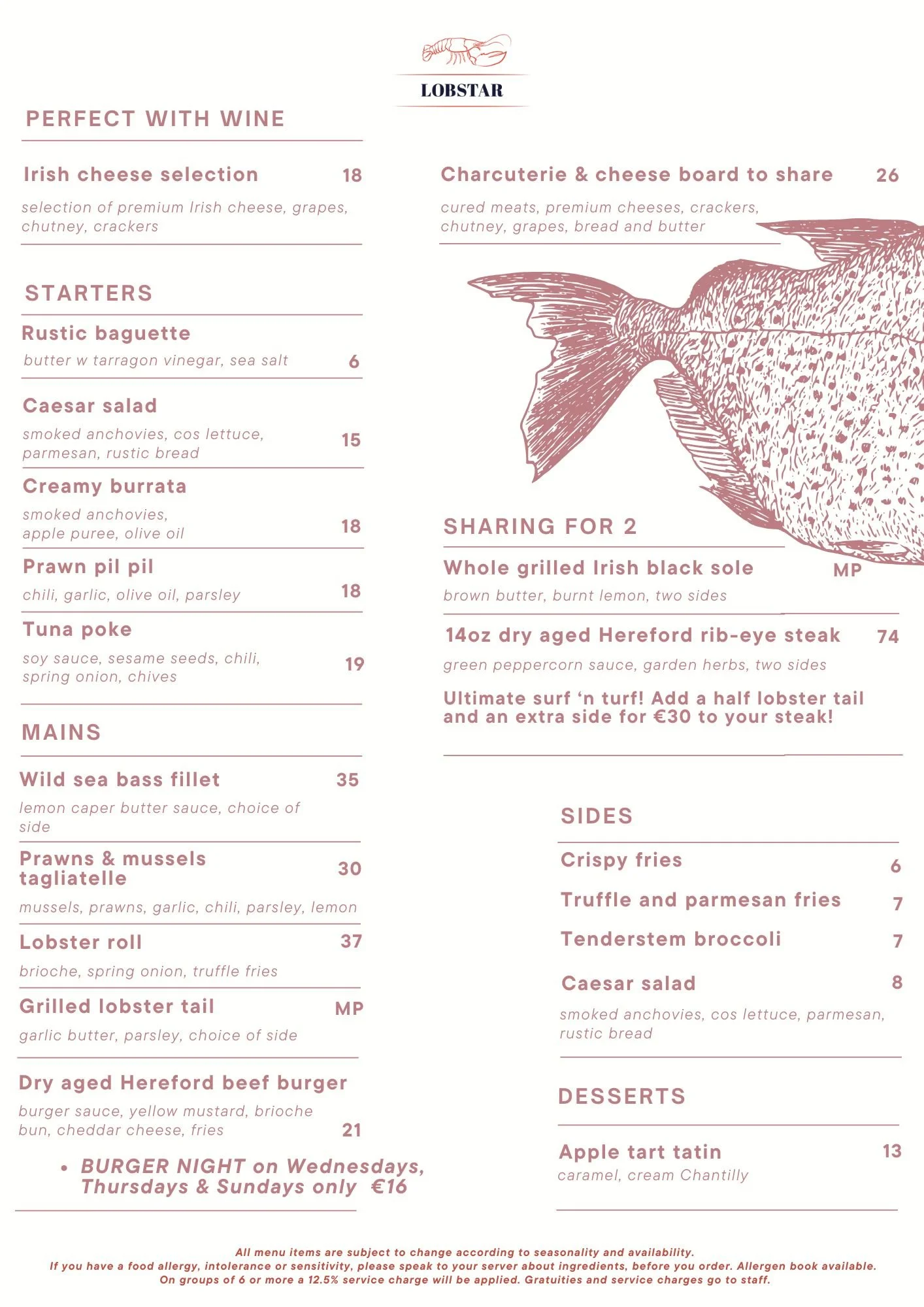 Collection service available during normal opening hours. All menu items are subject to change according to seasonality and availability.